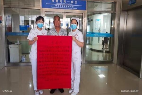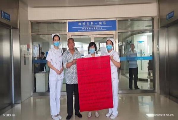 “你們辛苦了!”5月13日,延安大學(xué)咸陽醫(yī)院神經(jīng)內(nèi)科一病區(qū)的醫(yī)護(hù)人員剛嚴(yán)謹(jǐn)細(xì)致的交完班,就被一群人堵在了門口,原來是已經(jīng)康復(fù)的患者和家屬送來了給醫(yī)生和護(hù)士的兩封感謝信。