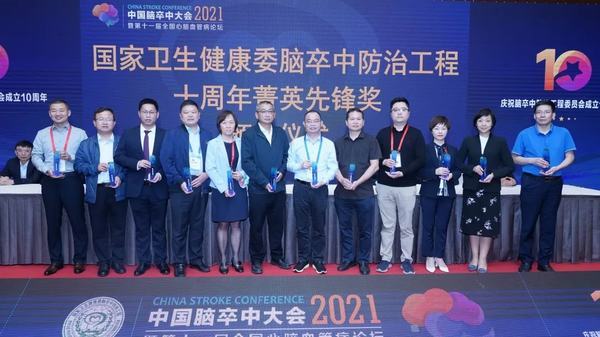 王丙聚教授榮獲國家衛(wèi)生健康委腦卒中防治工程十周年菁英先鋒獎(jiǎng)(左一為王丙聚)