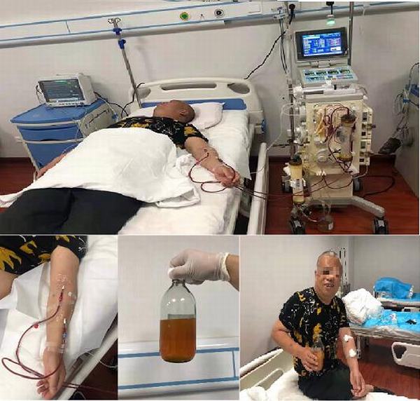 2021年6月2日,延安大學(xué)咸陽醫(yī)院腎病學(xué)科血液凈化治療室順利開展血脂凈化治療(DFPP模式),DFPP又稱雙重血漿置換療法,是通過血漿分離器分離出血漿,再通過更小??讓⒅虏∥镔|(zhì)和高分子量蛋白從血漿中清除,最終將白蛋白等低分子量蛋白和血細(xì)胞回輸體內(nèi)的治療方法?;颊叽舜沃委煾鶕?jù)治療前后的血液化驗值對比:總膽固醇降低73%,甘油三酯降低85%,高密度膽固醇降低26%,低密度膽固醇降低82%,療效十分顯著,同時可以改善血糖水平。