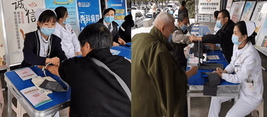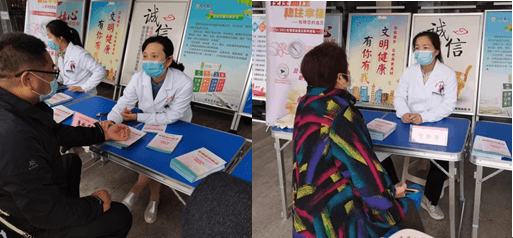盡管秋風(fēng)蕭瑟,但義診活動現(xiàn)場依然如火如荼地進(jìn)行著:由殷本玲、張苗苗護(hù)士長帶領(lǐng)的護(hù)理團(tuán)隊同時也在積極開展高血壓科普宣傳工作。護(hù)士們就高血壓患者的家庭血壓測量及服用降壓藥物的注意事項進(jìn)行現(xiàn)場宣講;尤其是廣大群眾對高血壓的錯誤認(rèn)知與測量血壓的誤區(qū)進(jìn)行耐心講解。簡單易懂的知識展架及圖文并茂的宣傳手冊為我們的義診增添了色彩,精神風(fēng)貌良好的醫(yī)護(hù)團(tuán)隊無不顯示著我們的精心準(zhǔn)備。