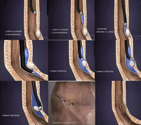 患者,范某某,女,58歲,因“間斷上腹部不適1月”入院,曾于外院行超聲內鏡示:食管粘膜下隆起,考慮為平滑肌瘤。入院后張榮主任對患者進行認真的評估,考慮到患者既往身體素質一般,病變較大,若采用外科手術需切除部分食管,手術風險較高且創(chuàng)面較大,術后恢復緩慢,嚴重影響患者生活質量。針對患者病變特點,可應用消化內鏡治療新技術STER將腫物切除。經(jīng)過充分的術前準備,張榮主任在無痛診療中心麻醉醫(yī)師的配合下為患者進行食管下段黏膜下腫瘤STER術,術中及術后未發(fā)生出血、穿孔及感染等并發(fā)癥。