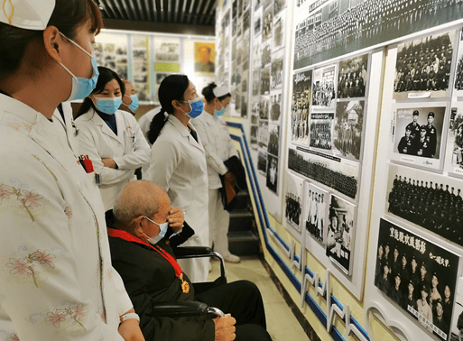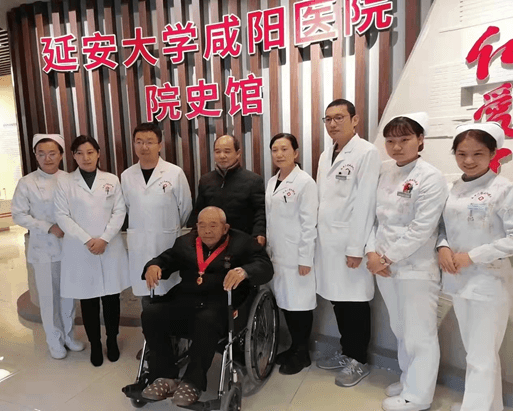 11月18日,在心血管內(nèi)科八病區(qū)主任連秋芳博士和CCU病區(qū)李新國(guó)主任等醫(yī)護(hù)人員的陪同下,王爺爺走進(jìn)了延安大學(xué)咸陽(yáng)醫(yī)院院史館,將自己的軍旅生涯與醫(yī)院的鐵軍雄風(fēng)和紅色基因緊緊相連。院史館館長(zhǎng)王進(jìn)祥同志熱情地接待了這位可愛(ài)的老戰(zhàn)士,并安排了專(zhuān)職人員為這位特殊的參觀者全程講解。從在炮火硝煙的解放戰(zhàn)爭(zhēng)中誕生,到歡慶新中國(guó)成立;從抗美援朝的戰(zhàn)地救援到社會(huì)主義鐵路建設(shè)的醫(yī)療保障;從百萬(wàn)大裁軍到服務(wù)社會(huì)群眾…在整整四十分鐘的講解中,王爺爺一直認(rèn)真聆聽(tīng)。在講述到醫(yī)院跟隨部隊(duì)跨過(guò)鴨綠江奔赴抗美援朝戰(zhàn)地救援、血灑戰(zhàn)場(chǎng)、被授予自由勛章時(shí),九十多歲的英雄老兵瞬間被拉回到70多年前那白雪皚皚的朝鮮戰(zhàn)場(chǎng),數(shù)次激動(dòng)地灑下熱淚,從懷中掏出了他在戰(zhàn)場(chǎng)上用生命換來(lái)的獎(jiǎng)?wù)?。透過(guò)王爺爺?shù)莫?jiǎng)?wù)?,我仿佛看到了沉甸甸的紀(jì)念章背后隱藏的那段浴火奮戰(zhàn)的歲月。追憶那場(chǎng)戰(zhàn)爭(zhēng),我們滿懷感激之情向最可愛(ài)的人--英雄的中國(guó)人民志愿軍致敬!