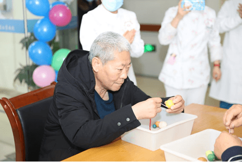 本次活動(dòng)主要圍繞患者的康復(fù)訓(xùn)練,通過競(jìng)技游戲,增加了趣味性。串珠子比賽:看似簡(jiǎn)單,但是對(duì)于偏癱的患者來說需要耐心、毅力才能完成。腦卒中偏癱患者上肢恢復(fù)相對(duì)比較困難,尤其是手指的運(yùn)動(dòng),通過穿不同大小的珠子可以鍛煉上肢的協(xié)調(diào)和精細(xì)動(dòng)作。