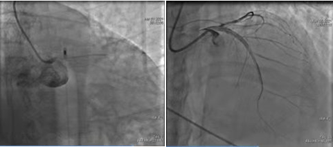 術(shù)前CAG示:左主干閉塞 IABP支持下開通閉塞血管