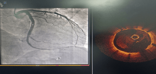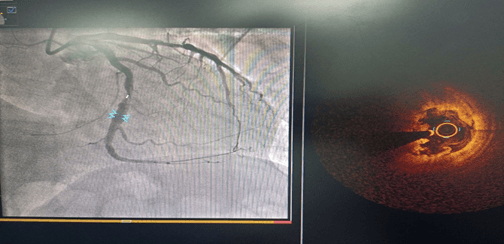 術(shù)后OCT示:支架貼壁及膨脹良好,無夾層及血腫