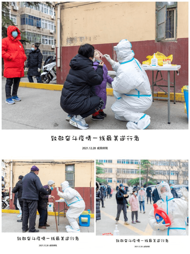 跟你們分享一些日常吧。今日在采樣點(diǎn),我在整理物資的間隙,突然聽到一句:“讓孩子們先吃飯吧,從早上到現(xiàn)在了,特別辛苦的,一口飯沒吃呢”!我聞聲抬頭,是位老奶奶。隨即排隊(duì)的人也在附和:“對(duì)呀,先吃飯吧”。她們絲毫不在乎自己已經(jīng)排了很長時(shí)間的隊(duì),我心里瞬間一股暖流涌上心頭,雖然只是一句很平淡的話,卻是整個(gè)冬日里最暖心的愛。在我們采樣結(jié)束脫下防護(hù)服時(shí),聽到群眾略帶心疼的感嘆:“竟然都是一群小丫頭呀”!像這樣的事情還有很多:有在采完核酸對(duì)我們敬禮的學(xué)生,有送我們自己親手繪制的“加油“”圖畫,有咿呀學(xué)語的小朋友生澀的道謝,有耋耄老人泛著淚花抱著自制暖手瓶送給我們?nèi)∨摹谶@個(gè)冬天,大家相互溫暖著。
