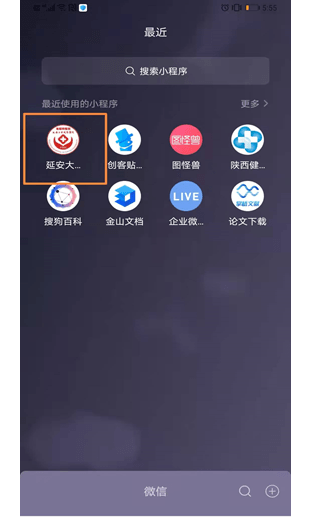 第一步:微信小程序搜索“延安大學(xué)咸陽(yáng)醫(yī)院互聯(lián)網(wǎng)醫(yī)院”