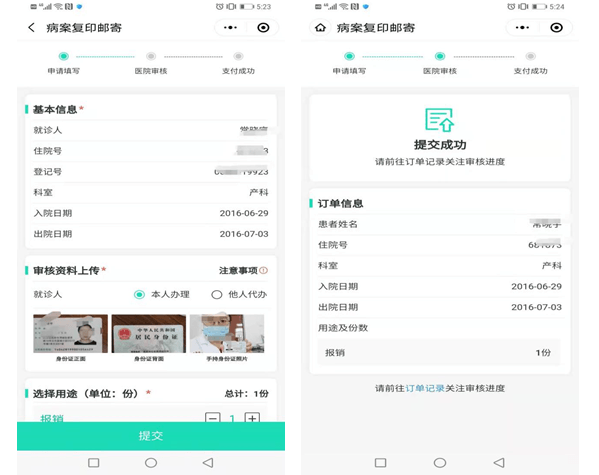 延安大學(xué)咸陽(yáng)醫(yī)院互聯(lián)網(wǎng)醫(yī)院病案郵寄服務(wù)是一套基于微信小程序的申請(qǐng)、審核、支付、復(fù)印、郵寄的管理系統(tǒng),也是“互聯(lián)網(wǎng)+醫(yī)療”的又一新舉措。患者進(jìn)入到“延安大學(xué)咸陽(yáng)醫(yī)院互聯(lián)網(wǎng)醫(yī)院”主界面后,只需在線上進(jìn)行病案復(fù)印申請(qǐng)、微信支付、物流信息查詢等簡(jiǎn)單操作,就可以獲得所需復(fù)印的病案資料,真正做到了無(wú)需排隊(duì)等待、隨時(shí)隨地申請(qǐng)、收費(fèi)透明清晰、進(jìn)度實(shí)時(shí)可查,系統(tǒng)還會(huì)通過(guò)手機(jī)短信提醒患者病案復(fù)印及快遞的進(jìn)度。