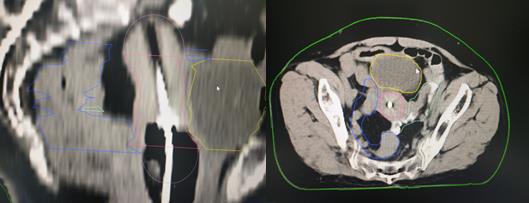 一位來(lái)自甘肅省天水市的54歲女性患者張某,診斷為宮頸癌Ⅲ期,患者已在西安某醫(yī)院完成盆腔ARC放療:DT50Gy/25f,Ln:DT62.5Gy/25f。放療后行MR檢查提示:宮頸小片狀異常信號(hào),左側(cè)髂血管旁異常信號(hào),盆腔少許積液,療效評(píng)估為PR;為尋求宮頸局部后程增量,于2021年12月16日入住我院放療科,經(jīng)尹信主任醫(yī)師及科室內(nèi)資深醫(yī)療團(tuán)隊(duì)評(píng)估后,為患者制定詳細(xì)診療方案,成功完成五次三維后裝近距離放療,大大降低了患者宮頸癌復(fù)發(fā)的機(jī)率,治療后患者無(wú)任何不適癥狀,得到了患者及家屬的高度認(rèn)可。