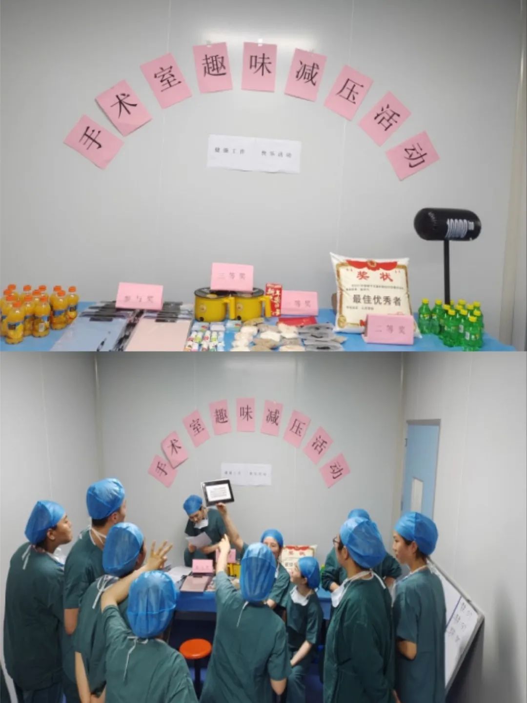 為豐富護(hù)士文化生活,放松身心,加強(qiáng)交流溝通,增強(qiáng)團(tuán)隊(duì)凝聚力,實(shí)現(xiàn)優(yōu)質(zhì)護(hù)理服務(wù),我院麻醉科/手術(shù)室護(hù)理團(tuán)隊(duì)利用休息時(shí)間于3月26日12:00,在手術(shù)室生活區(qū)組織了以“讓生命更安全,讓團(tuán)隊(duì)更優(yōu)秀”為主題的趣味減壓活動(dòng)。此次活動(dòng)由麻醉科/手術(shù)室優(yōu)質(zhì)護(hù)理組劉佳、史燁籌辦,槐金霞護(hù)士長(zhǎng)主持,手術(shù)室全體護(hù)士參與。