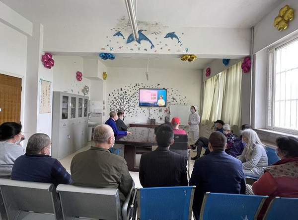 2022年4月20日15:30延安大學(xué)咸陽(yáng)醫(yī)院精神科工作人員組織患者在活動(dòng)室觀看我院康復(fù)專業(yè)組以“關(guān)注吞咽安全 實(shí)現(xiàn)自我照護(hù)”為主題的云科普節(jié)目。