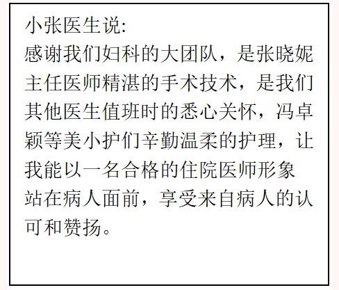 五病室的2位患者都是這天入院的,其中10床是外陰腫瘤患者,入院后很快就進行了手術,手術順利。因傷口位置特殊,很容易感染,所以術后需要勤換藥,甚至1天多次消毒抹藥,張醫(yī)生一天不落,傷口沒有感染,意料之中長好了;11床則是宮頸高級別上皮內(nèi)病變,因為是癌前病變,病人十分擔憂,常常一個問題反復問很多遍,張楊杰醫(yī)生也是不厭其煩地盡可能解釋病情。她們說“小張醫(yī)生就像不用休息一樣,怎么一直都有耐心,每次來查房的時候,就感覺開心了,心里也覺得安心得多。”
