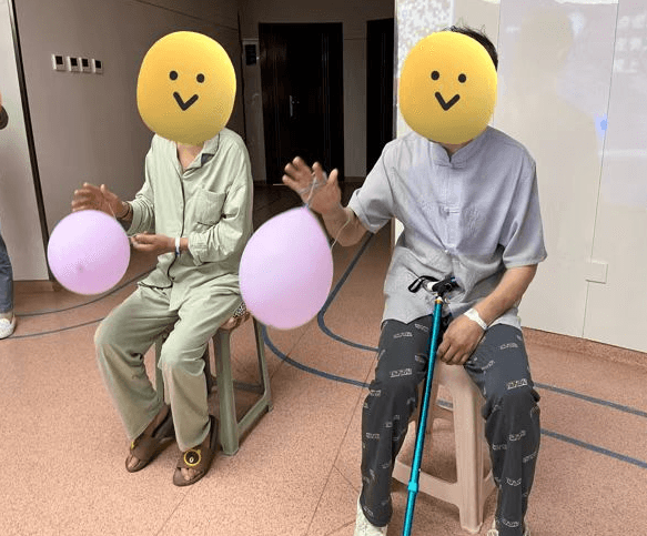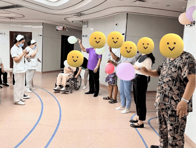 視頻結(jié)束,護(hù)士們?yōu)榛颊吆图覍俳M織了小游戲—拍氣球。通過(guò)有趣的小游戲讓大家全身心投入輕松愉快的活動(dòng)氛圍中來(lái)。