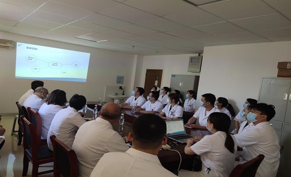 教學(xué)查房是臨床實踐教學(xué)的重要環(huán)節(jié),是培養(yǎng)醫(yī)師臨床基本技能和臨床思維能力的有效途徑;是臨床教學(xué)質(zhì)量和醫(yī)療業(yè)務(wù)能力水平的體現(xiàn);也是臨床教學(xué)工作的重要內(nèi)容之一。為促進(jìn)臨床教學(xué)工作持續(xù)有效的發(fā)展,規(guī)范教學(xué)查房流程,提高臨床教學(xué)查房質(zhì)量,2022年6月29日在消化內(nèi)科二病區(qū)進(jìn)行內(nèi)科病院教學(xué)查房觀摩活動;此次活動由內(nèi)科綜合辦組織,張維副院長、內(nèi)系各科室主任、消化內(nèi)科二病區(qū)全體醫(yī)生、規(guī)培生及護(hù)士長和責(zé)任護(hù)士共計20余人參加本次教學(xué)查房。