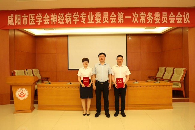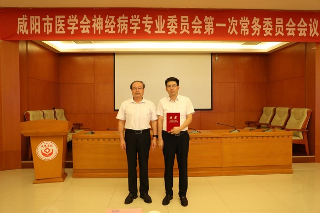 咸陽市醫(yī)學會會長陳劍輝為神經(jīng)病學專業(yè)委員會主任委員王丙聚同志頒發(fā)聘書