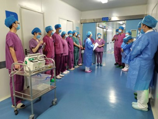 16:30在聽到一聲“著火了,著火了”演練正式拉開帷幕,在技師陳飛總指揮下各安全小組各盡其責。安全消防員周志偉護士立即關閉電腦電源,使用干粉滅火器對準火源根部進行滅火,陳飛通知辦公護士轉(zhuǎn)移等候區(qū)患者的同時關閉機房電源,侯新翠護士報告護士長,并撥通保衛(wèi)科電話請求支援,通知設備科和保障部關閉氧源和電閘。在陳飛的指揮下,治療護士晁艷艷及巡回護士魏繼云協(xié)助手術(shù)醫(yī)生張東升將正在手術(shù)的患者由東側(cè)安全通道撤離,將準備好的濕毛巾捂住患者的口鼻,盡可能以最低的姿勢或匍匐快速前進,侯新翠護士撤離搶救物品及儀器于安全區(qū)域,并協(xié)助維持秩序。辦公護士姚繼花將所有患者帶至安全地帶,安撫、穩(wěn)定患者情緒,并清點人數(shù)及儀器。