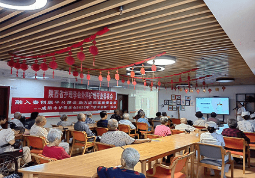 拳拳醫(yī)護(hù)情,悠悠敬老心。為了積極響應(yīng)咸陽市科學(xué)技術(shù)協(xié)會(huì)下發(fā)的《關(guān)于開展咸陽市 2022 年“學(xué)術(shù)金秋”活動(dòng)的通知》,延安大學(xué)咸陽醫(yī)院臨床護(hù)理專業(yè)委員會(huì)康復(fù)護(hù)理專業(yè)組、皮膚傷口護(hù)理專業(yè)組聯(lián)合我院宣傳部專家組,于2022年8月16日上午前往咸陽市不老幫渭城智慧健康養(yǎng)老中心開展“學(xué)術(shù)金秋”助發(fā)展,關(guān)愛老人送健康活動(dòng)。