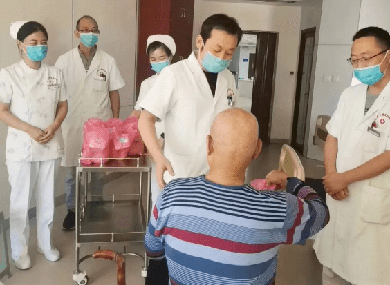 醫(yī)護(hù)人員親自把月餅、卡片送到患者手中,并囑咐他們安心養(yǎng)病,爭取早日康復(fù)!每位患者臉上都洋溢著幸福的喜悅,嘴里不停的表達(dá)著感謝和祝福。一位患者激動的說:“我真的好感動,剛好住院碰上中秋節(jié),沒想到你們不但為我們解除疾病,而且還那么注重我們的心理感受,我們覺得好溫暖!”金燦燦的月餅,散發(fā)著淡淡的香氣,一句句祝福的話語,溫暖了患者的心。不僅給患者們的住院生活增添“家”的溫暖,更為患者們積極配合治療、爭取早日康復(fù)注入了精神力量。每走到一個病房,都能聽到醫(yī)護(hù)人員和住院病人的慰問聲、感謝聲和笑聲。