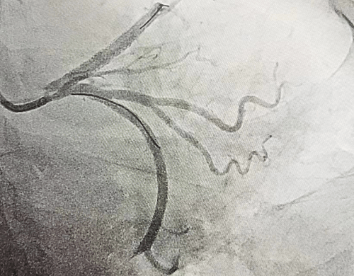 51歲的郭女士,因反復(fù)胸痛3天,加重2小時(shí)入院,入院后胸痛癥狀反復(fù)發(fā)作,檢查心電圖提示前壁導(dǎo)聯(lián)ST段明顯壓低,在此危急時(shí)刻心九科值班醫(yī)生陶醫(yī)生立即啟動(dòng)導(dǎo)管室,心九科介入團(tuán)隊(duì)行冠脈造影提示患者前降支近段99%狹窄,患者病情危在旦夕,遂立即行支架植入術(shù)解除冠脈狹窄,患者生命得以及時(shí)救治。