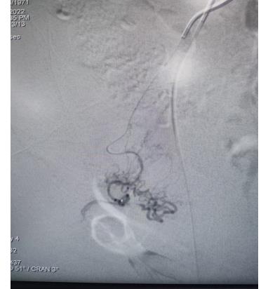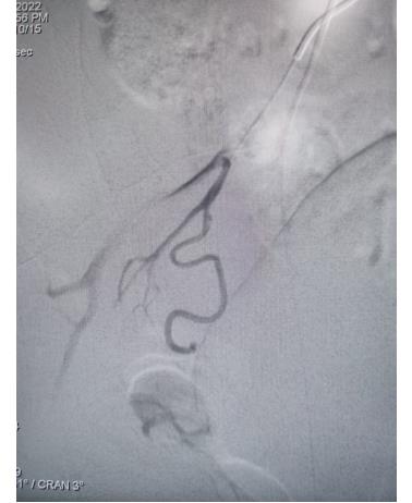 子宮動(dòng)脈栓塞術(shù)屬于血管介入性治療,方法是于股動(dòng)脈穿刺進(jìn)針插入導(dǎo)管,在X射線造影下定位進(jìn)入兩側(cè)子宮動(dòng)脈,注入栓塞劑完全栓塞子宮動(dòng)脈,從而達(dá)到止血或讓子宮肌瘤和病灶缺血壞死的目的;2022年12月6日,在崔旭輝主任、孟慶槐副主任醫(yī)師、馬力主治醫(yī)師等我院介入團(tuán)隊(duì)協(xié)作下,成功為患者進(jìn)行了雙側(cè)子宮動(dòng)脈栓塞術(shù),術(shù)后患者子宮異常出血停止,效果立竿見影,患者病情恢復(fù)良好。