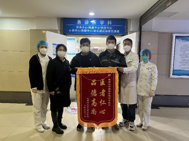 1月14日,延安大學(xué)咸陽(yáng)醫(yī)院一位患者家屬將寫有“品德高尚、醫(yī)者仁心”的錦旗送至急診醫(yī)學(xué)科,并激動(dòng)地說(shuō):“今天我一定要親自送上這面錦旗,表達(dá)我對(duì)延安大學(xué)咸陽(yáng)醫(yī)院急診醫(yī)學(xué)科醫(yī)護(hù)人員的感激之情!”