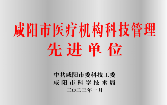 “咸陽市醫(yī)療機(jī)構(gòu)科技管理先進(jìn)單位”獎(jiǎng)牌