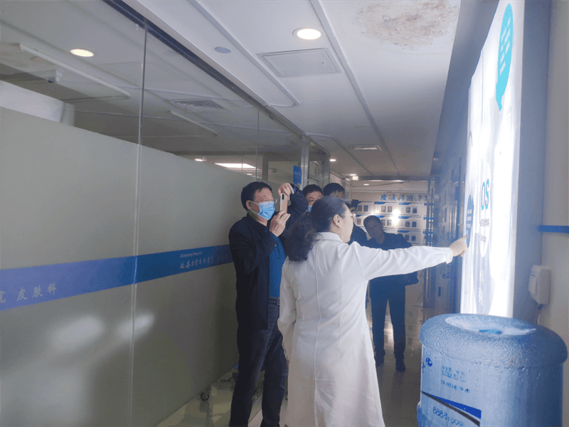 2023年4月13日,河南省沈丘縣人民醫(yī)院副院長王偉、皮膚科主任胡相成、總務(wù)科科長趙萬里來我科皮膚科進(jìn)行參觀交流。在皮膚科主任陳小艷的帶領(lǐng)下,參觀了皮膚科門診手術(shù)室、中醫(yī)治療區(qū)、激光面部治療區(qū)及毛發(fā)治療區(qū)。期間,陳小艷主任講述了皮膚科的發(fā)展歷程,將科室在建設(shè)過程中曾經(jīng)踩過的坑、走過的彎路以及發(fā)展思路、先進(jìn)的管理模式等經(jīng)驗(yàn)都向參觀人員進(jìn)行了生動的講解。在本次參觀學(xué)習(xí)過程中,河南省沈丘縣人民醫(yī)院的各位同道也就皮膚科的建設(shè)、發(fā)展、管理等與陳小艷主任進(jìn)行了深入的探討和溝通,并對我院皮膚科的發(fā)展表示高度的贊揚(yáng)。