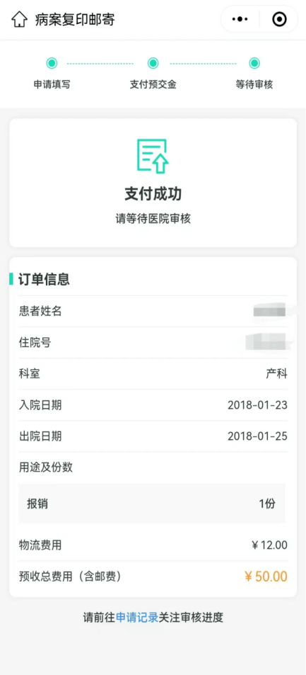 病案科審核成功后當(dāng)日可發(fā)快遞