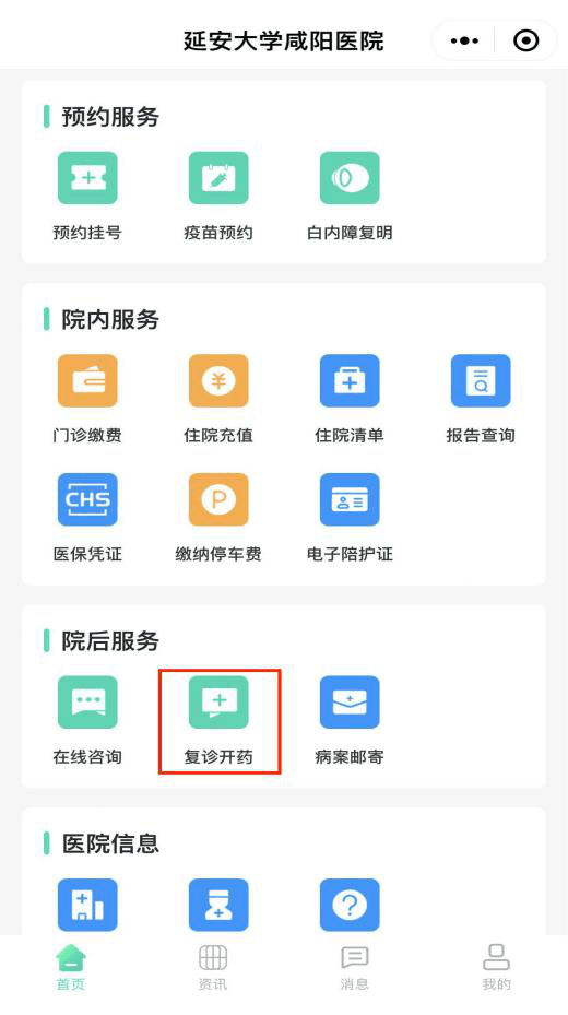 注冊綁定電子就診卡后,點擊復(fù)診開藥