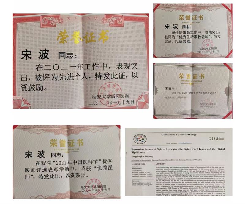 宋波自2009年開(kāi)始從事腦血管疾病的治療工作,門(mén)診、病房、手術(shù)室“三點(diǎn)一線”,他每天都在與時(shí)間賽跑,與生命賽跑,完成了超過(guò)上萬(wàn)例手術(shù),尤其擅長(zhǎng)顱內(nèi)外支架植入,動(dòng)脈瘤栓塞/夾閉,動(dòng)靜脈畸形手術(shù)介入栓塞及外科手術(shù)治療等。在宋波看來(lái),一名優(yōu)秀的醫(yī)生只有不斷地學(xué)習(xí),才能跟上時(shí)代的步伐,才能與時(shí)俱進(jìn),而對(duì)于“尖刀上起舞”的神經(jīng)外科醫(yī)生更應(yīng)如此。利器在手,理想指路。多年來(lái),宋波的臨床工作得到了醫(yī)院及業(yè)界的肯定和贊譽(yù),榮獲咸陽(yáng)市科技進(jìn)步一等獎(jiǎng)、咸陽(yáng)市優(yōu)秀醫(yī)師、于2021年被醫(yī)信天下評(píng)為中國(guó)影響力醫(yī)師、陜西非公神經(jīng)外科專委會(huì)和陜西傳播學(xué)會(huì)腦血管病專委會(huì)的常委,在省級(jí)核心期刊上發(fā)表了7篇論文,其中2篇SCI論文,積極參與學(xué)術(shù)研究和知識(shí)分享,為該領(lǐng)域的進(jìn)展貢獻(xiàn)了寶貴的經(jīng)驗(yàn)和見(jiàn)解。