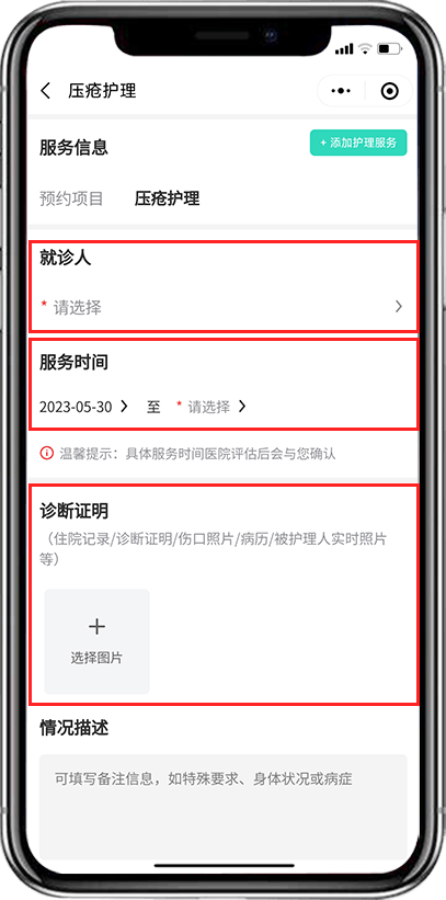 5、填寫就診人、服務(wù)時(shí)間、診斷證明信息