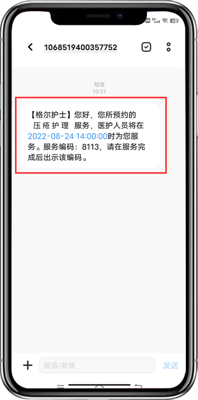7、收到確認(rèn)短信后,等待護(hù)士上門