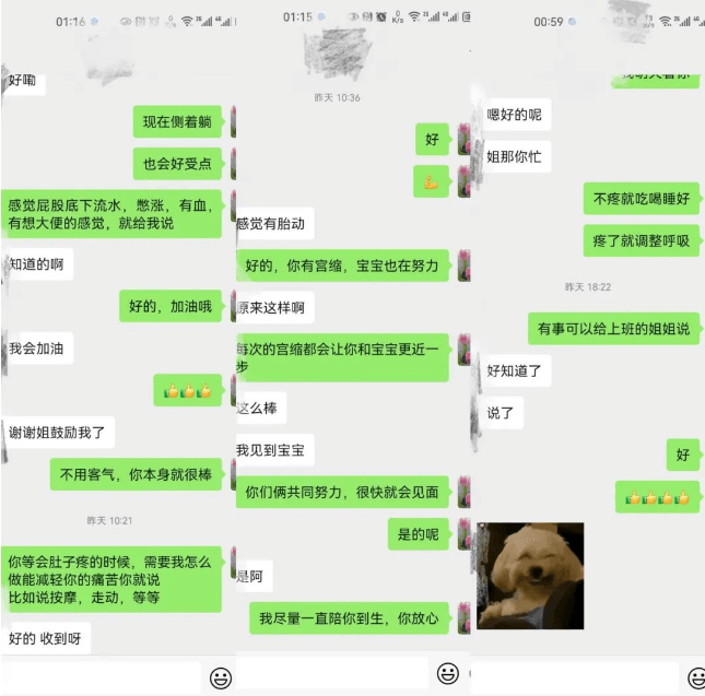 11月7日,產(chǎn)婦入產(chǎn)房待產(chǎn),由于她先天聾啞,這給醫(yī)護(hù)人員在待產(chǎn)過程中的溝通增加了不少難度,大家最終通過微信詳細(xì)地為她講解了待產(chǎn)過程中宮縮的特點(diǎn)、如何緩解緊張情緒、如何拉瑪澤呼吸緩解疼痛以及待產(chǎn)過程中的注意事項(xiàng)等。