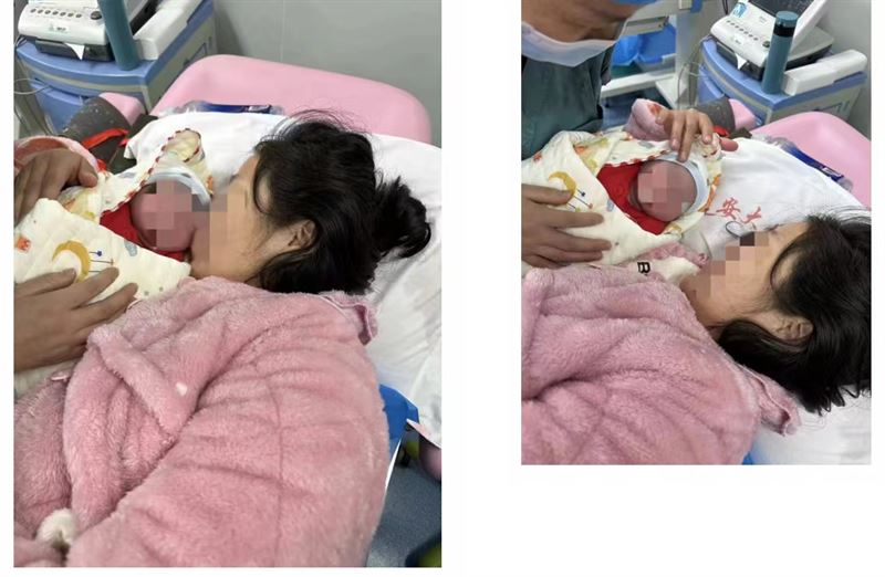 經(jīng)過幾個(gè)小時(shí)的努力,產(chǎn)婦于00:01平安誕下一名男寶。實(shí)施早接觸時(shí),產(chǎn)婦看著寶寶露出了欣慰的笑容,寵溺的親吻了一下,不斷地為我們的醫(yī)生和助產(chǎn)士豎起大拇指,微笑著點(diǎn)頭表達(dá)感謝。