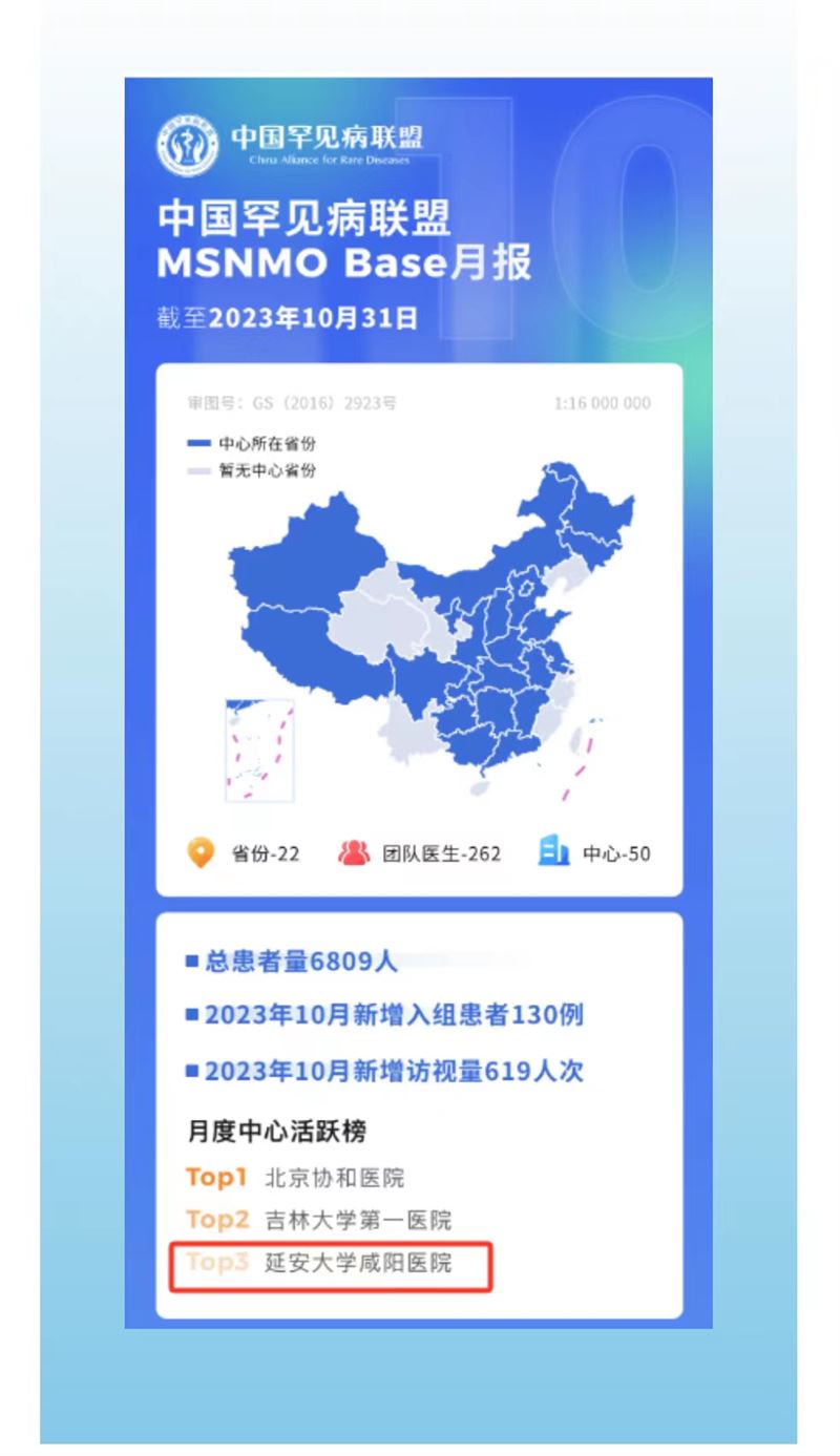 近日從中國(guó)罕見(jiàn)病聯(lián)盟月報(bào)中獲悉,延安大學(xué)咸陽(yáng)醫(yī)院在月度中心活躍榜中位居第三。