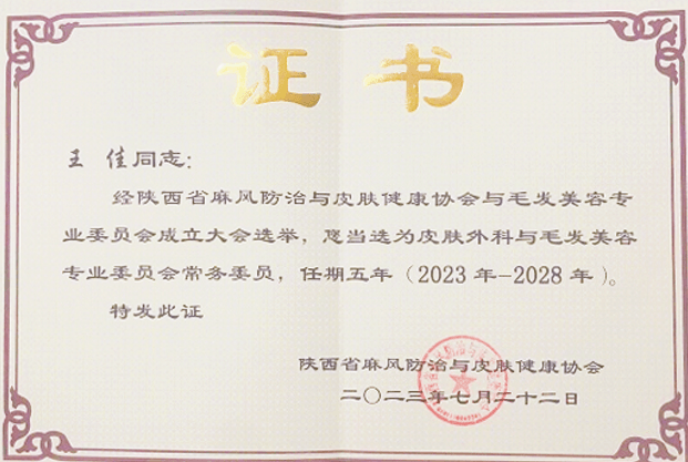 王佳,延安大學(xué)咸陽(yáng)醫(yī)院皮膚科外科組組長(zhǎng)、皮膚教研室講師、中國(guó)民族醫(yī)藥協(xié)會(huì)皮膚專(zhuān)業(yè)委員會(huì)外科組副組長(zhǎng)、陜西省性學(xué)會(huì)皮膚與美容分會(huì)委員、陜西省麻風(fēng)防治與皮膚健康協(xié)會(huì)皮外毛發(fā)專(zhuān)業(yè)委員會(huì)常務(wù)委員。在2018年、2020年、2022年獲得“優(yōu)秀共產(chǎn)黨員”、“先進(jìn)個(gè)人”、“優(yōu)秀帶教老師”、“課堂教學(xué)創(chuàng)新比賽一等獎(jiǎng)”、“優(yōu)秀醫(yī)師”等榮譽(yù)稱(chēng)號(hào)。擅長(zhǎng)減張縫合、精細(xì)縫合技術(shù),手術(shù)治療皮膚良惡性腫瘤、去除痣、先天性胎記,瘢痕整復(fù),外傷縫合,腋臭,植發(fā)等皮膚外科技術(shù)。對(duì)包括痤瘡、蕁麻疹、皮炎、濕疹、帶狀皰疹、真菌感染、脫發(fā)等其他皮膚病的診治積累了一定的臨床經(jīng)驗(yàn)。