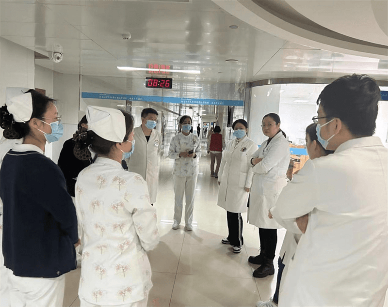 患者家屬緊急呼叫護士:“病房著火了!”責(zé)任護士立即攜帶滅火器前往病房確認火情,并開展滅火措施,因火情太大,樊靜護士長立即啟動緊急應(yīng)急預(yù)案。