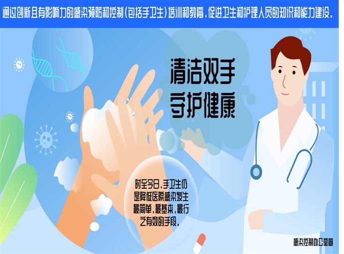 為進(jìn)一步提高我院醫(yī)務(wù)人員手衛(wèi)生依從性,加強(qiáng)對(duì)患者家屬及陪護(hù)人員手衛(wèi)生的宣傳,減少疾病的傳播,促進(jìn)醫(yī)療安全和患者安全,在世界手衛(wèi)生日來臨之際,我院感染控制辦公室舉辦了以“清潔雙手,‘手’護(hù)健康”為主題的手衛(wèi)生系列培訓(xùn)宣傳活動(dòng)。