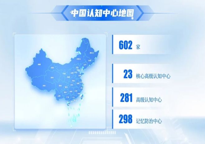 中國(guó)認(rèn)知中心地圖覆蓋了全國(guó)31個(gè)省市自治區(qū),23家核心高級(jí)認(rèn)知中心、281家高級(jí)認(rèn)知中心以及298家記憶障礙防治中心,合計(jì)達(dá)到602家。通過(guò)這張地圖,患者和家屬能夠快速查詢周邊的專業(yè)醫(yī)療資源。