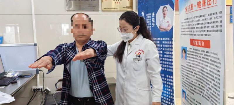 夏輝副主任醫(yī)師為患者查體,向眩暈患者如何在日常生活中進(jìn)行防控進(jìn)行全面的指導(dǎo)
