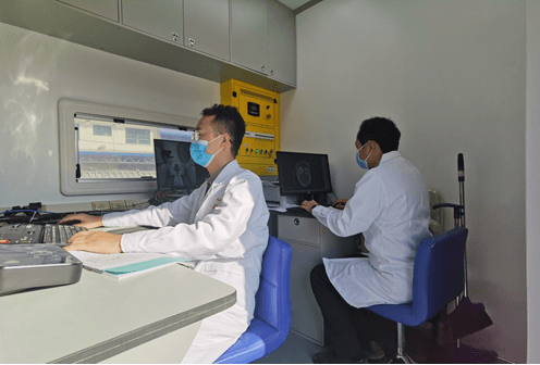 此次義診活動真正體現(xiàn)了 “以專業(yè)醫(yī)療知識服務群眾,以專業(yè)精神引領百姓健康”的宗旨。宣傳部組織配合流動醫(yī)院團隊,并派遣車載CT、移動體檢車及10余名專家赴坡底村進行義診,還有來自我院腦血管科、心血管科、婦科、外科等多位專家?;顒蝇F(xiàn)場,專家們?yōu)榘傩者M行面對面、零距離的義診服務,醫(yī)護人員為前來就診的居民測血壓、血糖,為他們檢查身體狀況,并詳細詢問病情,耐心細致地為群眾分析病因,免費為百姓進行白內(nèi)障、青光眼、眼底疾病、眼部干澀不適等各種眼科疾病的診斷,講解常見婦科疾病科普宣傳和保健知識,講解如何防治腦血管疾病及日常生活中的注意事項、飲食安全、合理用藥等知識。