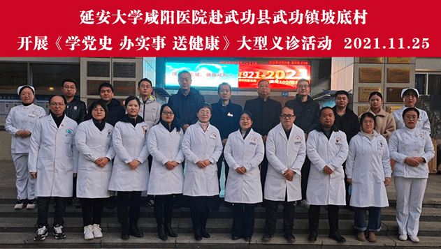 為進一步推動黨史學習教育,落實“學黨史、悟思想、辦實事、開新局”的工作要求,聚焦“我為群眾辦實事”,踐行為民服務宗旨,11月25日至26日,延安大學咸陽醫(yī)院赴武功縣武功鎮(zhèn)坡底村舉行“學黨史、辦實事,服務百姓健康、助力鄉(xiāng)村振興”大型義診活動。參加此次義診的有武功縣縣委副書記喬恩平、武功縣統(tǒng)計局黨組書記、局長譚國強、武功鎮(zhèn)人民政府鎮(zhèn)長馬猛會,精誠醫(yī)療集團董事局主席、延安大學咸陽醫(yī)院董事長李衛(wèi)軍、流動醫(yī)院院長趙莉、流動醫(yī)院行政副院長張軍強、流動醫(yī)院業(yè)務副院長王梅芳、宣傳部科長張道峰和相關村干部及群眾400余人。