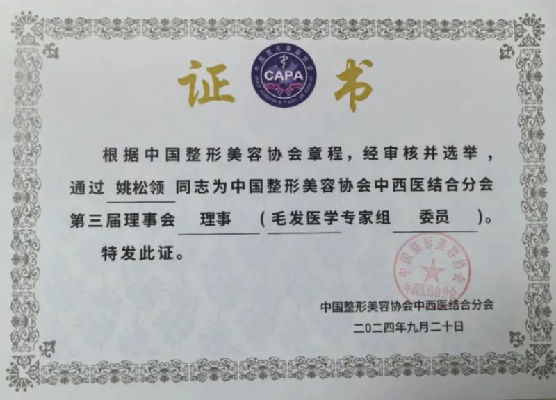 在本次大會上,我院皮膚科主任陳小艷教授被聘為中國整形美容協(xié)會中西醫(yī)結合分會第三屆理事會理事(毛發(fā)醫(yī)學專家組副主任委員),并受邀進行學術報告;皮膚科姚松領醫(yī)生被聘為中國整形美容協(xié)會中西醫(yī)結合分會第三屆理事會理事(毛發(fā)醫(yī)學專家組委員)。