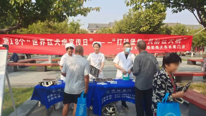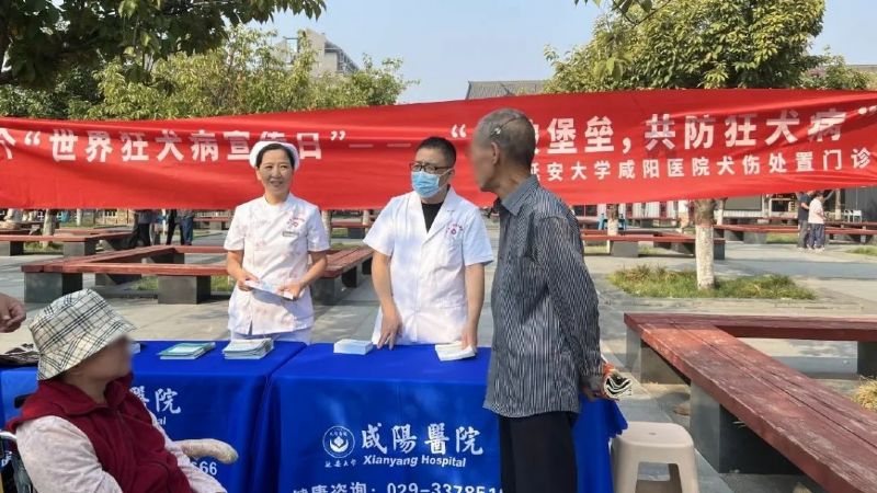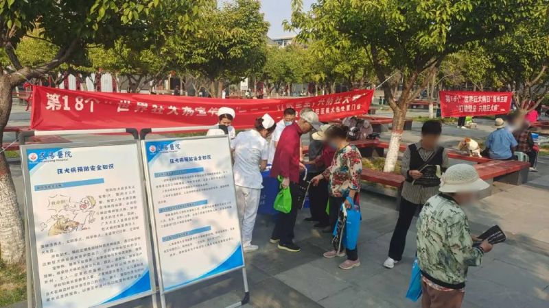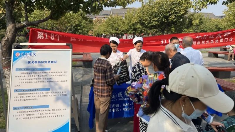 活動(dòng)現(xiàn)場(chǎng)形式多樣,內(nèi)容豐富,懸掛醒目主題橫幅,設(shè)立宣傳咨詢臺(tái),精心布置了圖文并茂的知識(shí)海報(bào),吸引了一波又一波市民駐足觀看與咨詢。延安大學(xué)咸陽醫(yī)院犬傷規(guī)范化處置門診醫(yī)護(hù)人員充分發(fā)揮專業(yè)優(yōu)勢(shì),通過現(xiàn)場(chǎng)互動(dòng)方式講解展示、分發(fā)宣傳折頁以及面對(duì)面咨詢方式,向過往群眾詳細(xì)介紹了狂犬病的傳播途徑、危害及預(yù)防措施,特別強(qiáng)調(diào)了傷口處置和疫苗接種等暴露后規(guī)范處置的重要性。