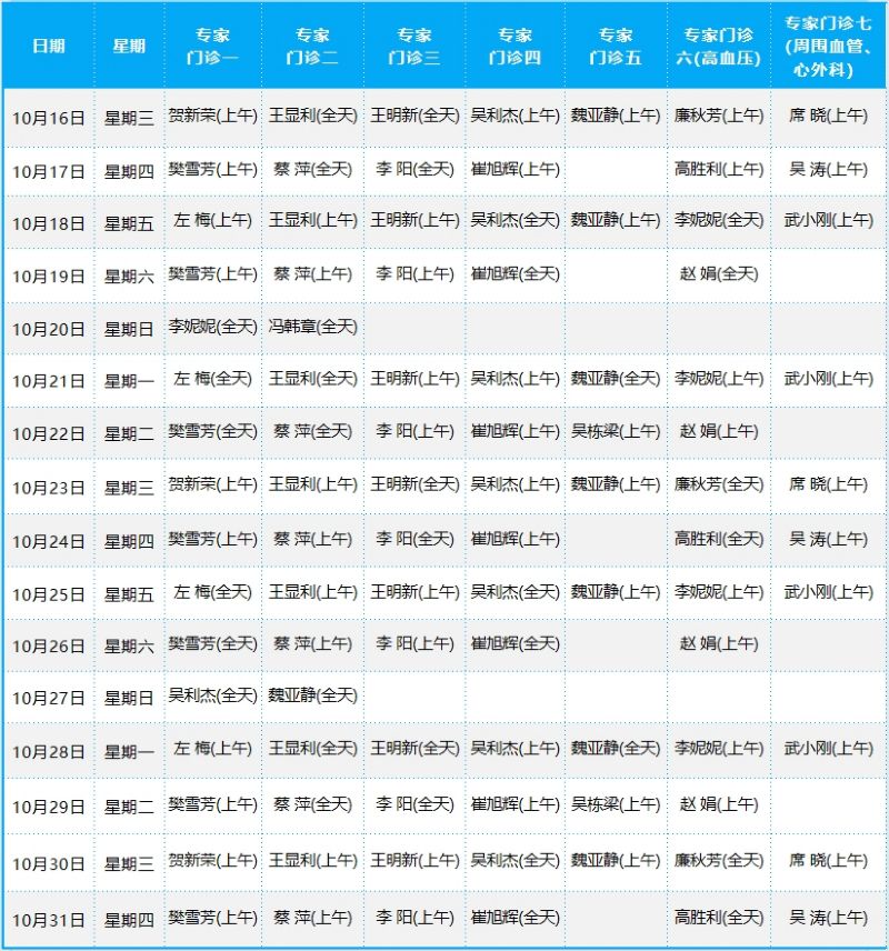 心血管病院門診排班表