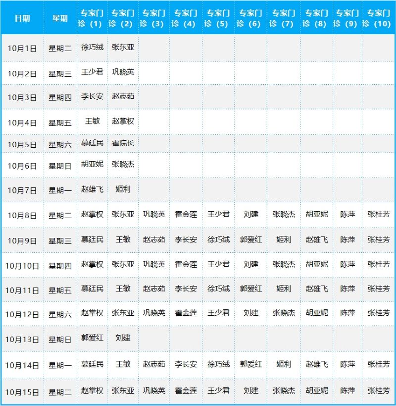 2024年10月份門診排班表