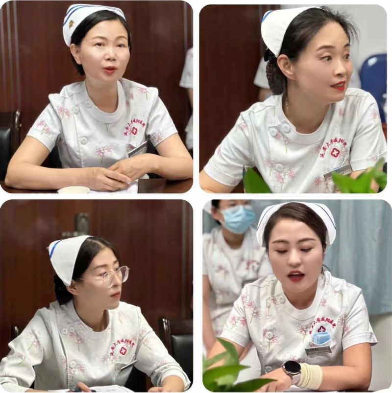 崔琳護士長根據(jù)2023年中華護理學會團體標準《住院患者靜脈血栓栓塞癥預防護理與管理專家共識》和《周圍血管血栓性疾病置管溶栓護理專家共識》對術(shù)前患者是否可以進行踝泵運動和下肢周長測量方法進行討論,并指導對患者術(shù)后下肢輕度水腫用硫酸鎂濕敷:1/4硫酸鎂粉劑+200ml水浸濕毛巾對患肢包裹,用保鮮膜包裹,每天3-5次,每次30min,補充了我們對此護理的不足。薛娜護士長從敘事的角度對護理宣教時機給予指導,并對茍美護士在護理過程中用敘事護理以患者為中心、尊重患者的故事、傾聽和理解等方面對患者的精心護理給予好評和肯定。在查房過程中,護理團隊針對患者的病情和護理也展開了熱烈的討論。大家各抒己見,提出了許多寶貴的建議和改進措施。例如,徐莉護士長提出及時指導臥床患者腹式呼吸,鍛煉患者心肺功能:殷本玲護士長指出對術(shù)后患者指導穿脫彈力襪、使用醫(yī)療彈力繃帶等問題給予指導。 黨文婷總護士長對本次查房進行了總結(jié)和點評,充分肯定了護理團隊的工作,并強調(diào)了護理工作中細節(jié)的重要性。護理過程中要重視患者的心理護理,表揚責任護士茍美的進步,表明把病人的需求作為中心點,有技巧的對患者進行宣教,健康宣教知曉率一定會有所提升,為患者提供更加全面、個性化的護理服務。