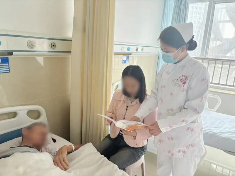 術(shù)后,腎病學(xué)科腹透??谱o(hù)士認(rèn)真仔細(xì)的給患者做宣教,指導(dǎo)患者如何行居家腹膜透析治療。
