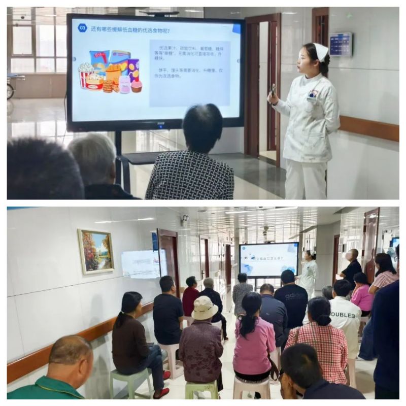 梁靖雨護(hù)士從低血糖的癥狀、發(fā)生原因、預(yù)防處理等方面進(jìn)行了細(xì)致的講解,并將授課內(nèi)容總結(jié)成通俗易懂的“低血糖防治順口溜”,讓患者能正確識(shí)別、預(yù)防低血糖。