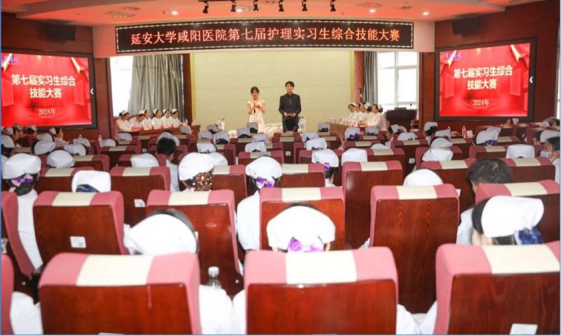 為全面提高護(hù)理實(shí)習(xí)生的技能水平和綜合素質(zhì),展示新時(shí)代護(hù)理實(shí)習(xí)生良好的精神風(fēng)貌,全面提升護(hù)理教學(xué)質(zhì)量,營(yíng)造以賽促教,以賽促學(xué)、教學(xué)相長(zhǎng)的教學(xué)氛圍,延安大學(xué)咸陽(yáng)醫(yī)院護(hù)理教學(xué)管理委員會(huì)于2024年10月23日在第三學(xué)術(shù)廳舉辦第七屆護(hù)理實(shí)習(xí)生綜合技能比賽。經(jīng)過前期精心籌備,通過理論考核及技能考核初賽、復(fù)賽層層篩選,共評(píng)選出12名護(hù)理實(shí)習(xí)生進(jìn)入決賽,競(jìng)賽現(xiàn)場(chǎng)有教學(xué)管理委員會(huì)全體委員、帶教組長(zhǎng)及實(shí)習(xí)生共200余人參加。